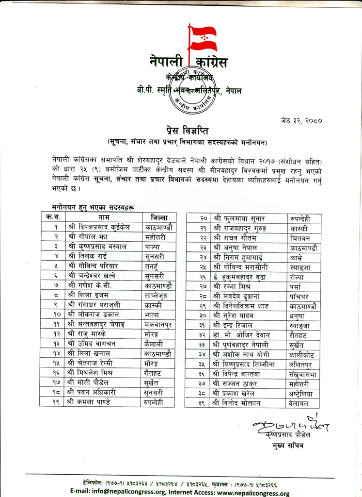 कांग्रेसको प्रचार विभागले पनि पूर्णता पायो, को–को मनोनीत ?