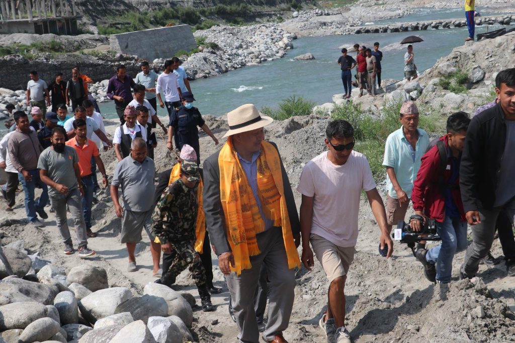 प्रधानमन्त्री दाहाल, स्वास्थ्यमन्त्री बस्नेतलगायतबाट मेलम्ची क्षेत्रको अवलोकन, क्षति भएको संरचना छिटो बनाउने