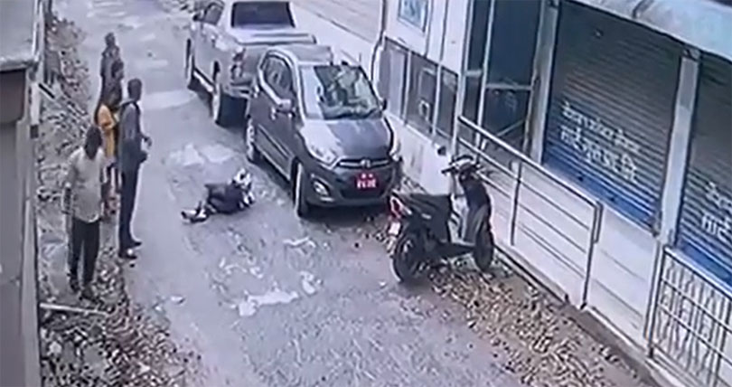 सीसीटीभीको भिडियोमा युवक गाडीमाथि खसेको देखिन्छन् । युवक खसेको गाडी नेपाटप कम्पनीका मालिकको हो ।