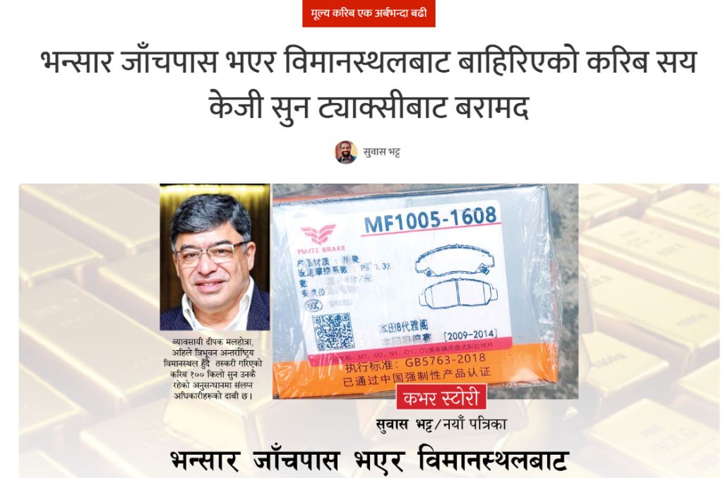 पटक–पटक विमानस्थलबाट ठूलो परिमाणमा सुन तस्करी हुने गरेका घटना सार्वजनिक हुँदै आएका छन् ।