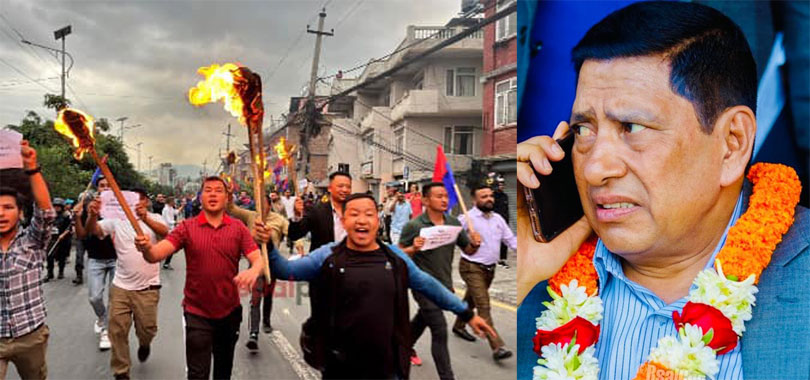 काठमाडौं । एक सय किलो सुन तस्करी हुँदा पनि सिंहदरबारमा उप्परखुट्टी लगाएर बसेका उप–प्रधान तथा गृहमन्त्री नारायणकाजी श्रेष्ठविरुद्ध युवा संघले प्रदर्शन गरेको छ ।