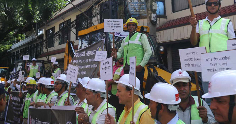 निर्माण व्यवसायीहरूले केही दिनदेखि निर्माण कार्यमा भुक्तानी र म्याद थप लगायतका ९ बुँदे मागसहित आन्दोलन गर्दै आएका छन् ।