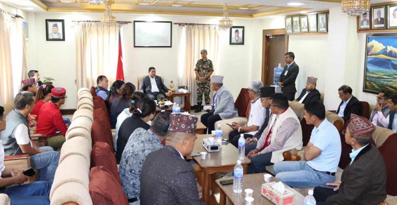 मुडेबल लगाएर नेपाल तामाङ घेदुङ संघीय समिति र नेपाल मगर संघ केन्द्रीय समितिले गृहमन्त्री नारायणकाजी श्रेष्ठलाई भेट्न पुगेको छ ।