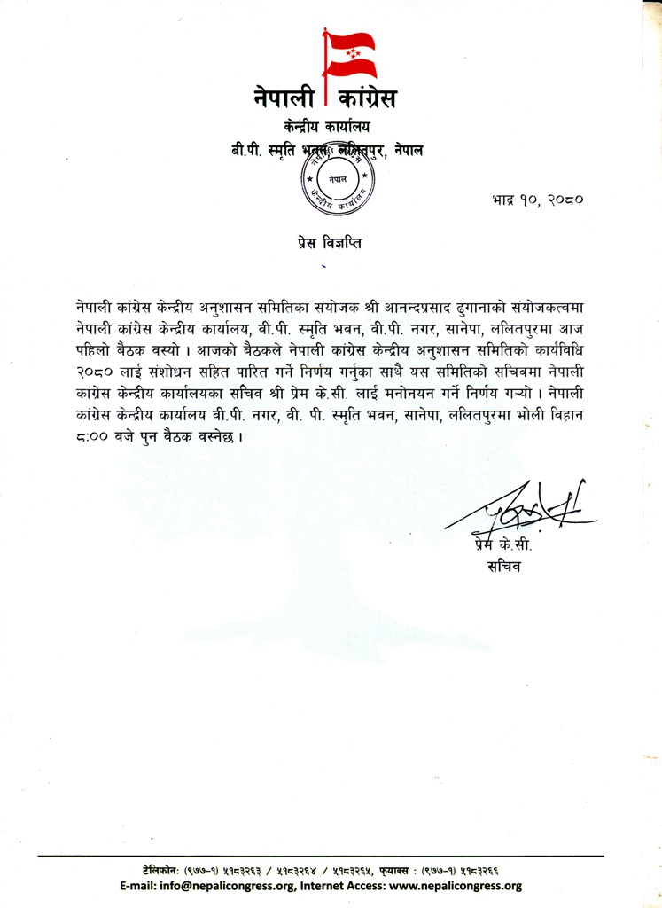कांग्रेसद्वारा अनुशासन समितिको सचिवमा केसीलाई मनोनयन, कार्यविधि पारित
