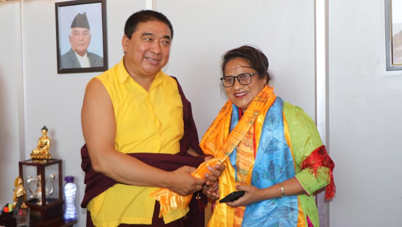 काठमाडौं । संस्कृति, पर्यटन तथा नागरिक उडडयन राज्यमन्त्री सुशीला श्रीपाली ठकुरीलाई लुम्बिनी विकास कोषका उपाध्यक्ष डा. ल्हारक्याल लामा (प्रथम योल्मो खेन्पो छिमे छिरिङ)ले स्वागत गरेका छन् ।