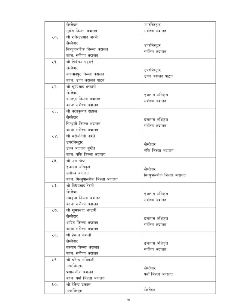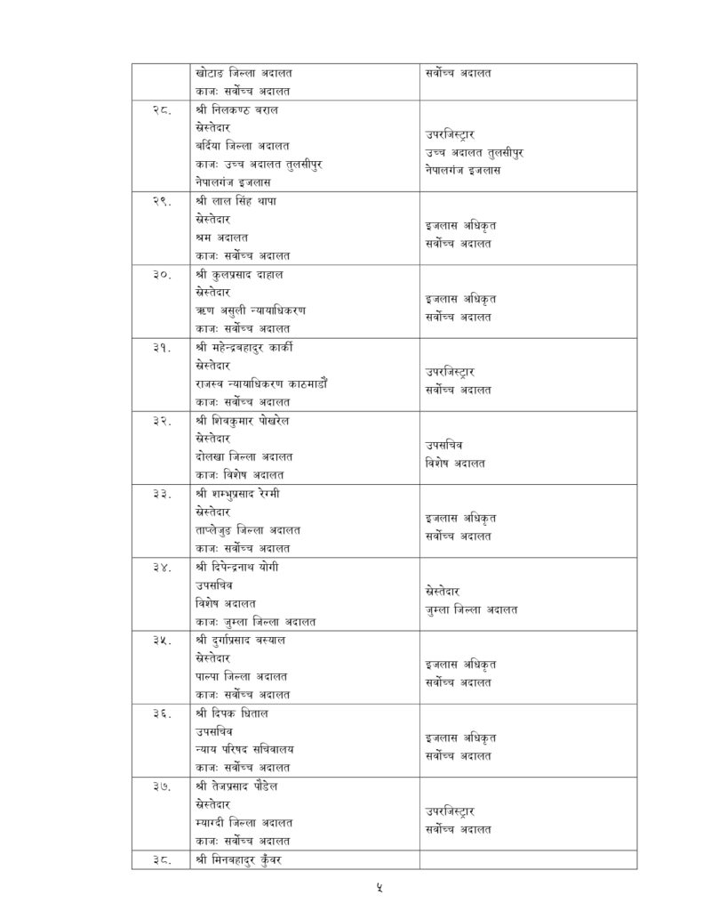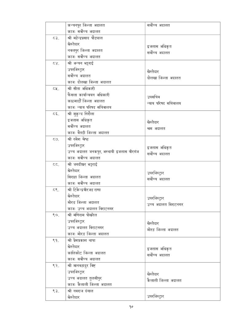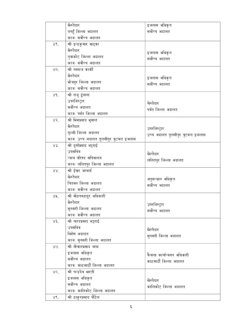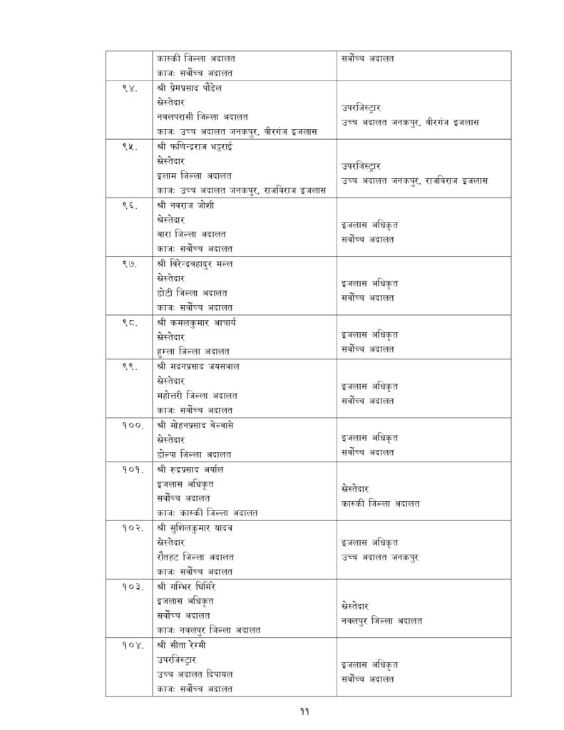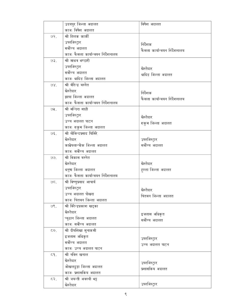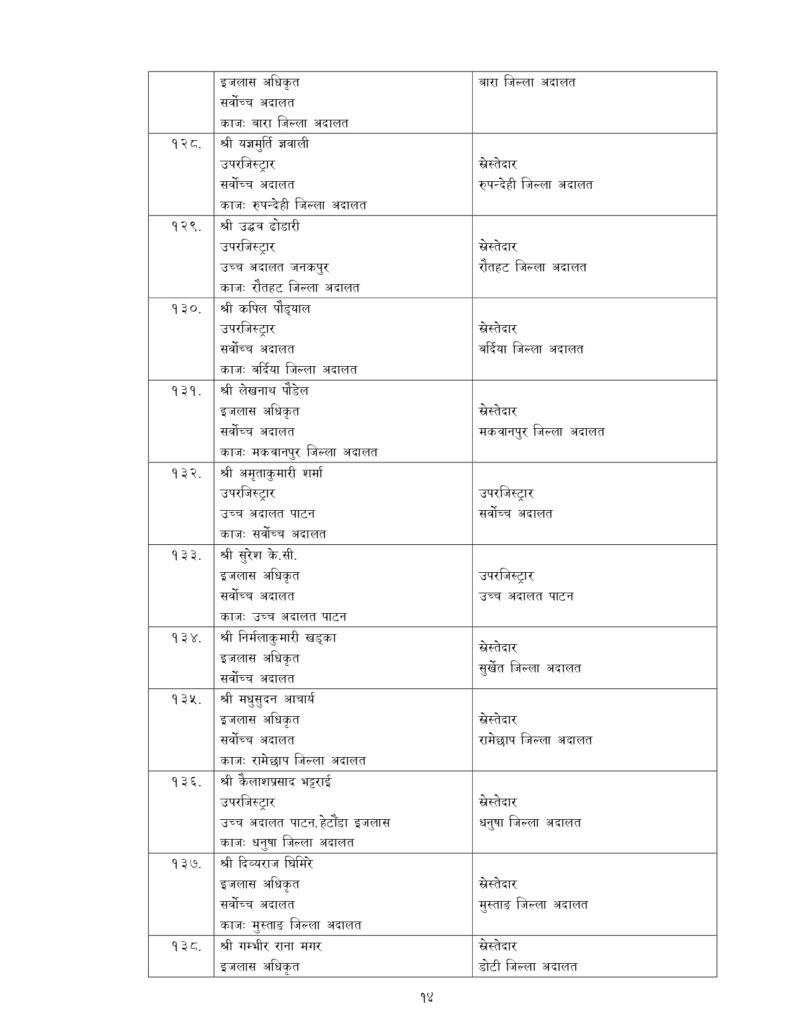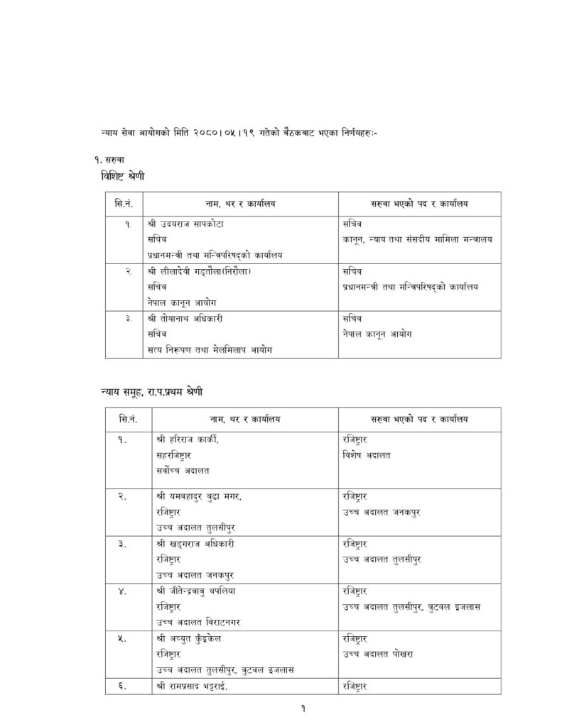 न्याय सेवामा कार्यरत १२ जना सह–सचिव, १५६ जना उप–सचिवको पनि सरुवा भएको छ ।