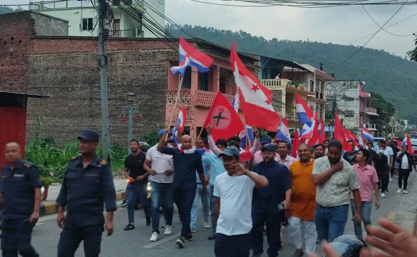 कांग्रेस सहमहामन्त्री महेन्द्र राय यादव माथिको सांघातिक हमलाको विरोध गर्दै बिहीबार साँझ तरुण दल मकवानपुरले गृहमन्त्री श्रेष्ठको राजीनामा माग्दै नाराबाजी गर्दै जुलुस निकालेको हो ।