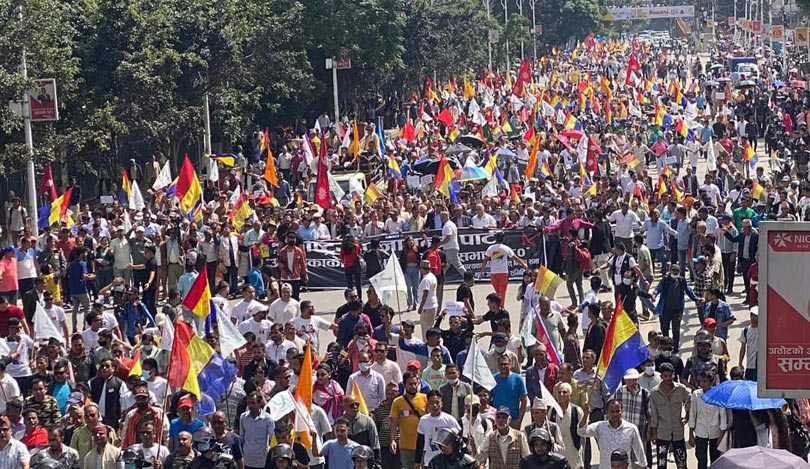 राप्रपासहित पार्टी निकट संगठनहरुले हिन्दुराष्ट्र र राजसंस्थाको पुन:स्थापना, संघीयताको खारेजी, भ्रष्टाचार काण्डको पूर्ण छानबिनको माग गर्दै प्रदर्शन गरेका हुन् ।