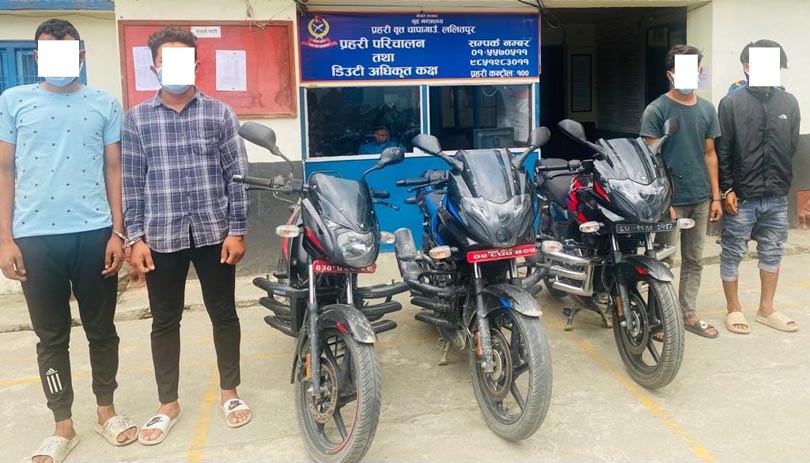 काठमाडौं । प्रहरीले ललितपुरमा चोरीको तीन थान मोटरसाईकलसहित चार जनालाई पक्राउ गरेको छ ।