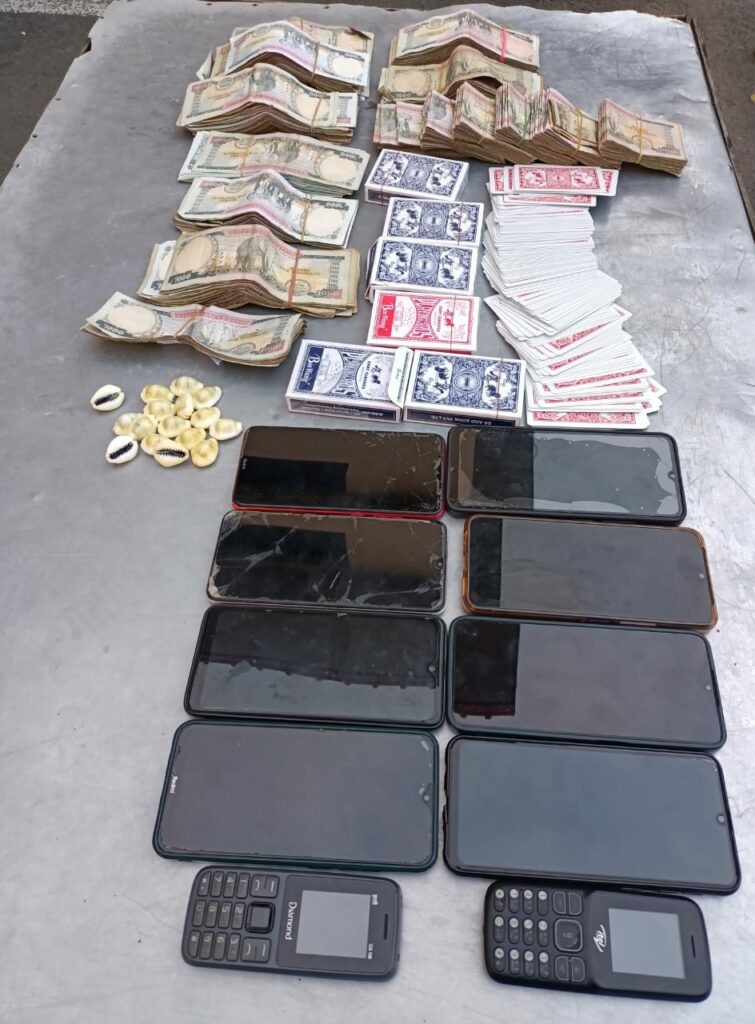 जुवातास खेलिरहेको अवस्थामा कौडा –१६ थान, तास–९ बुक, मोबाईल –१० थान तथा जुवा खालबाट नौ लाख दुई हजार रुपियाँ बरामद गरिएको प्रहरीले जनाएको छ ।