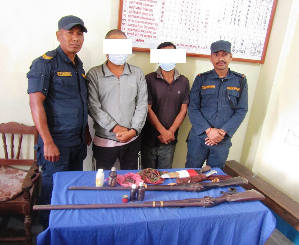 पक्राउ पर्नेमा गढवा गाउँपालिका वडा नं. ६ बस्ने वर्ष ४९ को दिलबहादुर राना र सोही ठाउँ बस्ने वर्ष ४५ को निमबहादुर बुढा रहेका छन् । उनीहरूले अवैध भरुवा बन्दुक बोकेर हिँडीरहेको अवस्थामा फेला पारी शरीर खानतलासी गरी साथमा भएको भरुवा बन्दुकसहित पक्राउ गरिएको थियो ।
