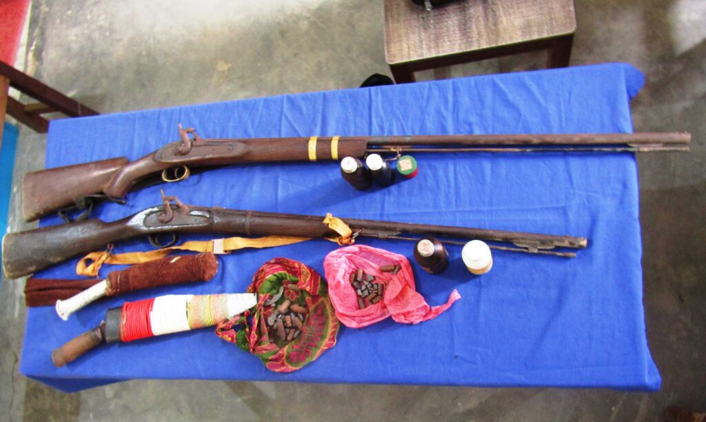 कात्तिक १७ गते राति साढे दश बजे गढवा गाउँपालिका वडा नं. ६ मनिकपुरस्थित बगाले बिसाउने सामुदायिक वनमा भरुवा बन्दुकसहित मानिसहरू हिँडीरहेको भन्ने गोप्य सूचनाका आधारमा प्रहरी टोलीले दुईजनालाई हतियारसहित पक्राउ गरेको सोमबार जारी विज्ञप्तिमा उल्लेख छ ।