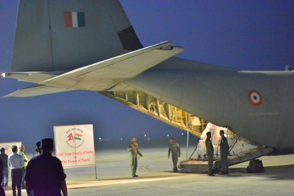 सोमबार साँझ अत्यावश्यक चिकित्सा तथा सरसफाई सामग्री, त्रिपाल, स्लीपिङ्ग ब्याग र कम्बलसहितको ९ टन राहत सामग्री भारतीय वायुसेनाको विशेष विमान सी–१३० ले नेपालगञ्ज ल्याइपुर्‍याएको हो ।