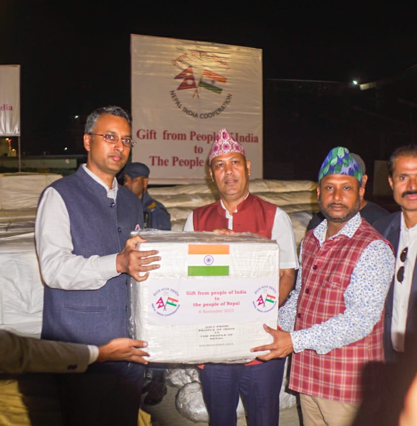 त्रिपाल, टारपोलिन सिट, कम्बल, स्लीपिङ्ग ब्याग, अत्यावश्यक औषधि र चिकित्सा उपकरणसहितको ११ टनभन्दा बढी आपतकालीन राहत सामग्रीको पहिलो खेप भारतले नेपाल सरकारलाई कात्तिक १९ गते हस्तान्तरण गरेको थियो ।