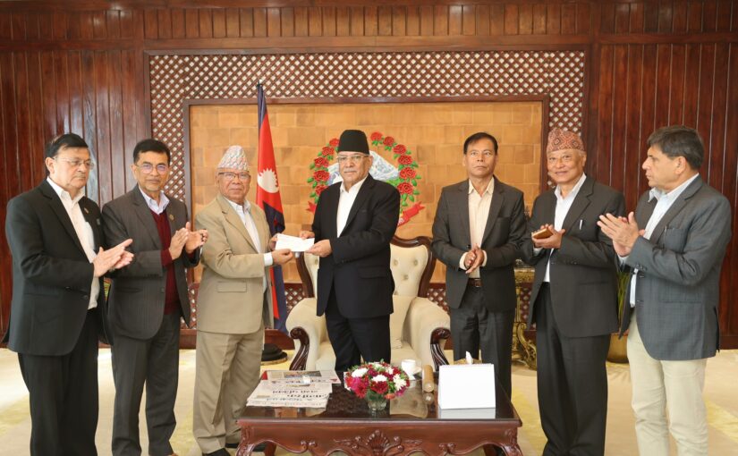 प्रधानमन्त्री दाहाललाई माधव नेपालको पार्टीद्वारा २५ लाख प्रदान