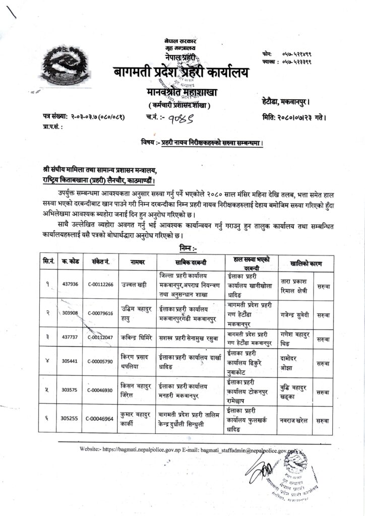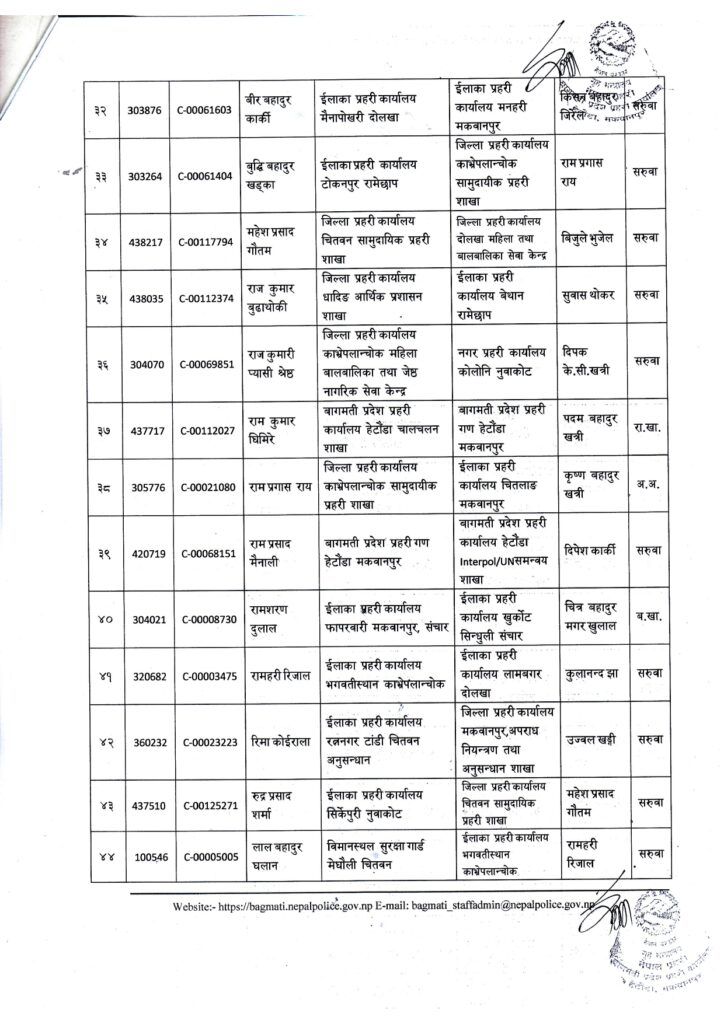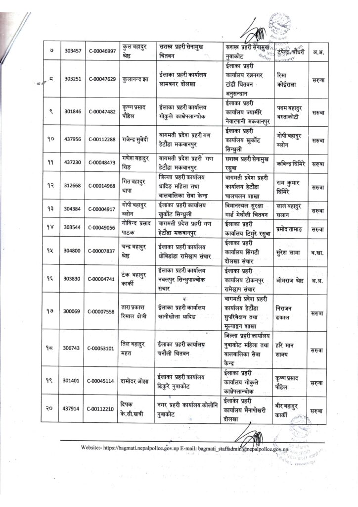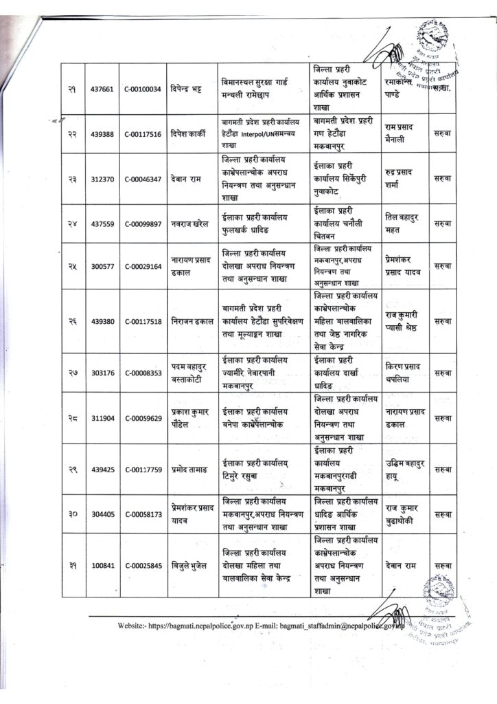 काठमाडौं । नेपाल प्रहरीको बागमती प्रदेश प्रहरी कार्यालय हेटौँडाले प्रहरी नायव निरीक्षक (सई)हरूको सरुवा गरेको छ ।