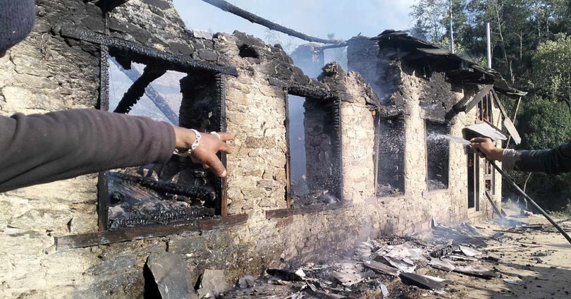 मोलङमा शेर्पाको घरमा आगलागी हुँदा ठूलो क्षति, खतिवडाद्वारा गहिरो दु:ख व्यक्त