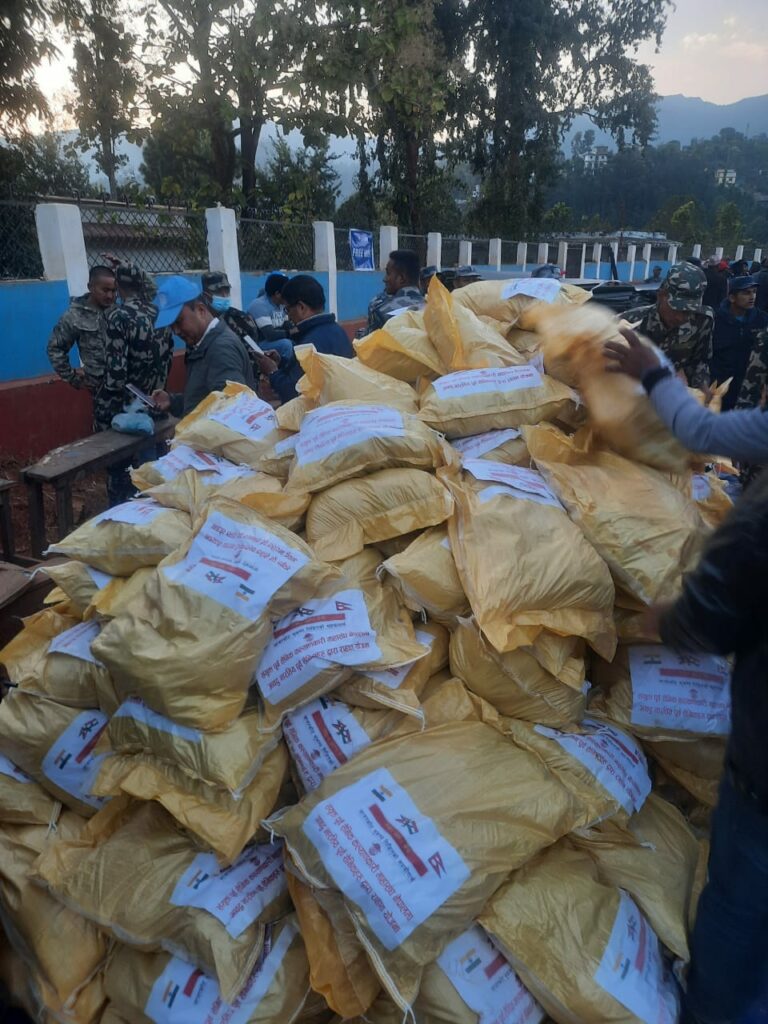जसमा २७५ काटुन खाद्यान्न र २९ काटुन औषधि रहेको प्रेस विज्ञप्तिमा उल्लेख छ ।