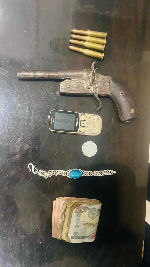 उनीहरुको साथबाट प्रहरीले कटुवा पेस्तोल थान १, गोली थान ४, बटमबाला सामसुङ कम्पनीको मोबाइल थान १, चारहजार दुइ सय असी, शिवम् सिमेन्ट लेखेको सिक्का थान १, चाँदीको ब्रासलेट थान १ बरामद भएको छ ।