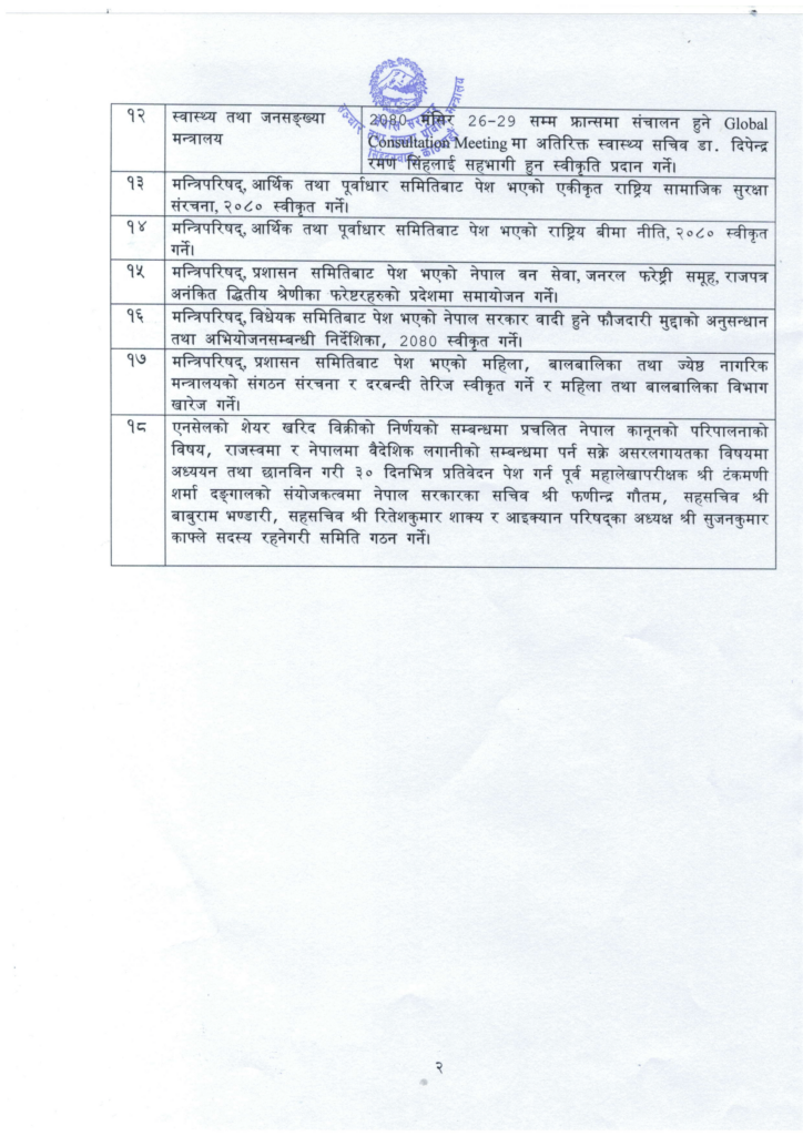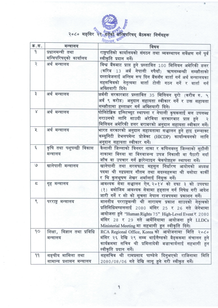 पोलिटेन्किक इन्स्टिच्यूट स्थापना र नेपाली कृषकलाई मल उपलब्ध गराउनका लागि साउदी अरेविया सरकारबाट प्राप्त हुने दुई मिलियन अमेरिकी डलर बराबरको अनुदान सहायता स्वीकार गर्ने निर्णय पनि सरकारले गरेको छ ।