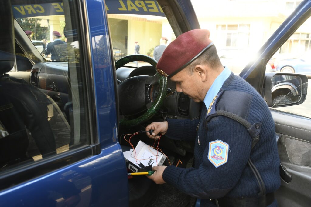 काठमाडौंमा प्रहरीको सीआरभी गाडीहरूमा लोकोमो डिभाइ जडान
