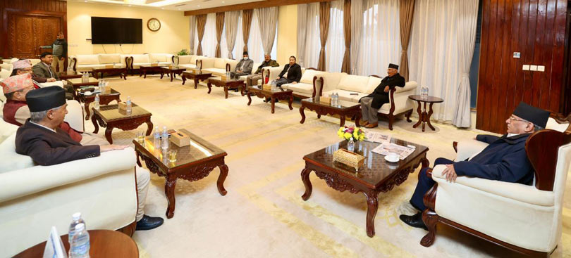 बैठकमा कांग्रेसका उप–सभापति एवम् उप–प्रधान तथा रक्षामन्त्री पूर्णबहादुर खड्का, उप–सभापति एवम् कानूनमन्त्री धनराज गुरुङ, माओवादी केन्द्रका उप–महासचिव वर्षमान पुन, एमाले सचेतक महेश बर्तौला, कांग्रेस नेता एवम् वरिष्ठ अधिवक्ता राधेश्याम अधिकारीलगायत नेताहरू पनि उपस्थित रहेका थिए ।