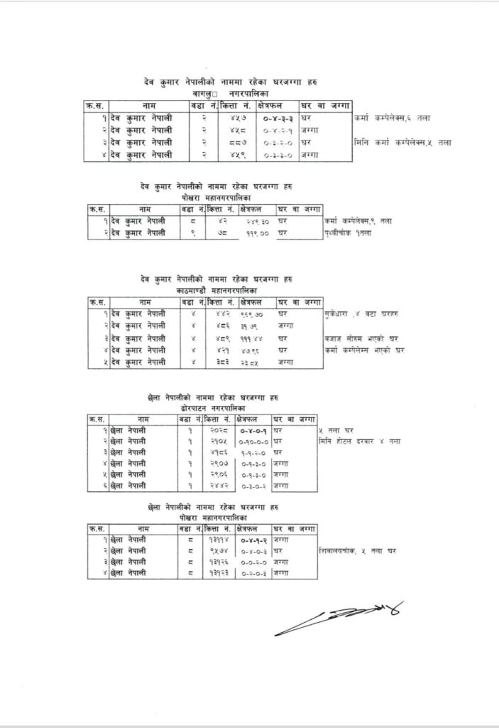 नेपालीले आफू र आफ्नो नाममा रहेको घर जग्गा सहकारीका बचतकर्ताहरूले जम्मा गरेको रकम, बैंकको ऋण र आफ्नो निजी सम्पत्ति समेतबाट खरिद गरेको बताएका छन् ।