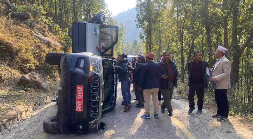 एमालेका महासचिव पोखरेल सवारी गाडी दुर्घटना, झण्डै ज्यान गयो