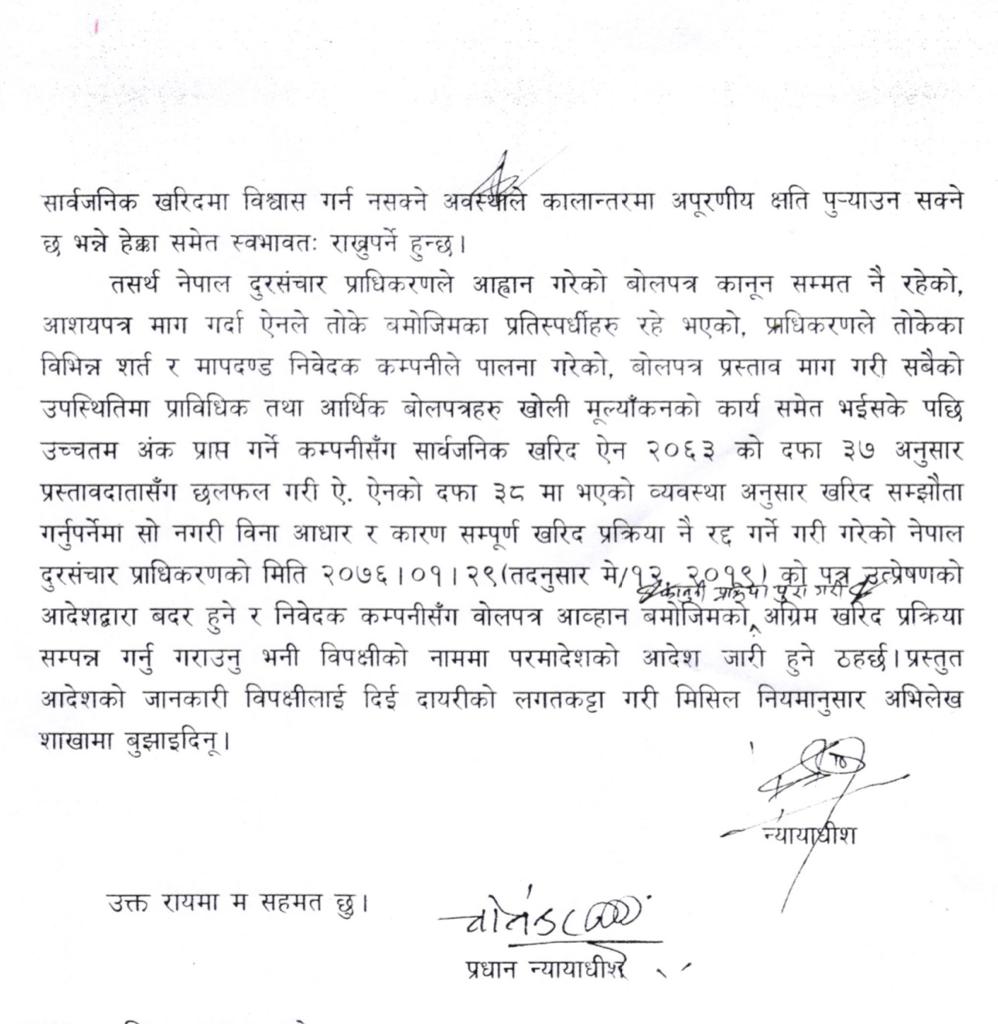 भेनराईज सोलुसनले २१ जेठ २०७६ मा नेपाल सरकारलाई विपक्षी बनाएर न्यायका लागि सर्वोच्च अदालतको ढोकासम्म पुग्यो । दुई वर्षको सुनुवाईपछि अन्तत: सर्वोच्चले भेनराइज सोलुसनलाई टेरामक्स प्रविधि भित्र्याउन अनुमति दिनु भनी प्राधिकरणका नाममा १४ वैशाख २०७८ मा परमादेश दियो । तत्कालीन प्रधानन्यायधीश चोलेन्द्रशम्शेर जबरा र न्यायधीश कुमार चुडालको संयुक्त इजलासले आदेश दिएको थियो ।