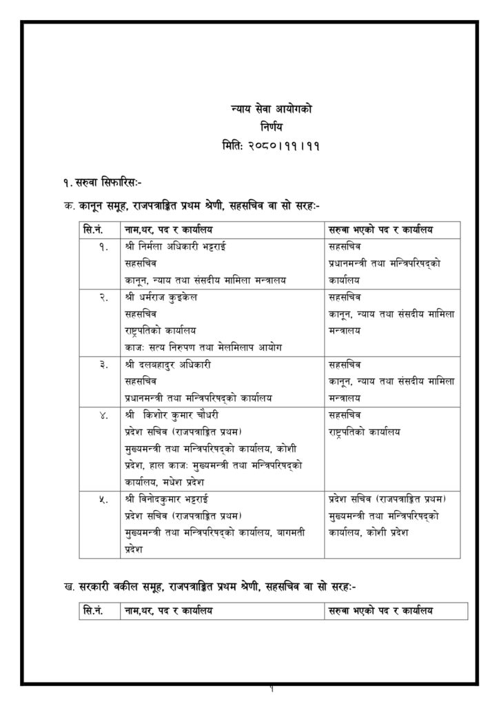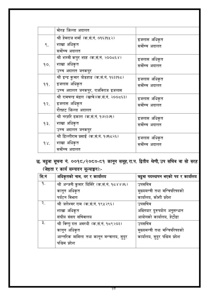 शुक्रबार बसेको बैठकले कानून समूह, सरकारी वकिल समूह, न्याय समूहका कर्मचारीको सरुवा तथा पदस्थापनका लागि आयोगले सिफारिस गरेको छ ।