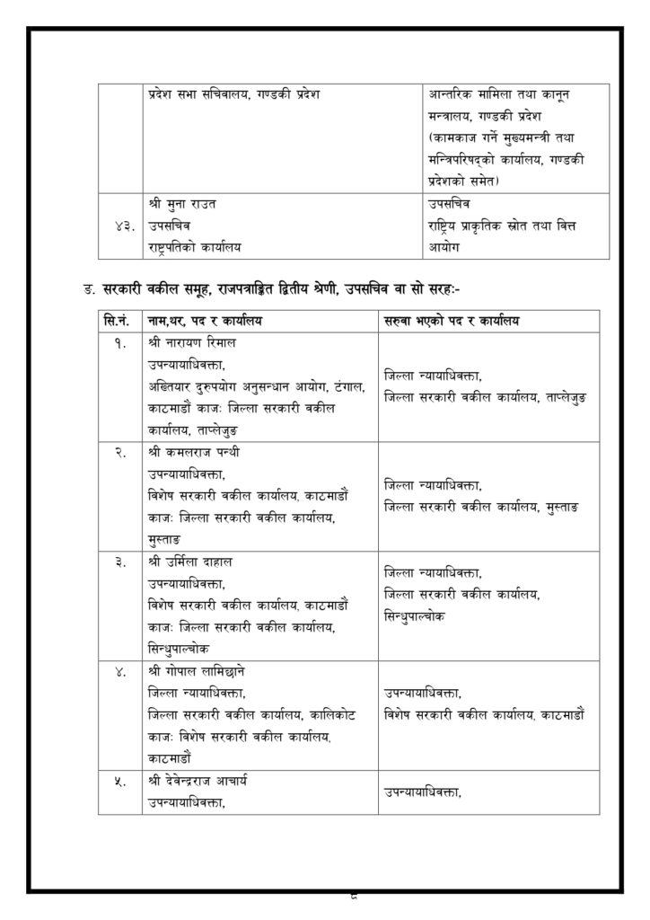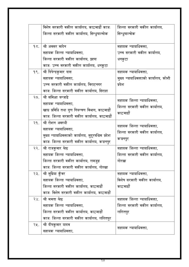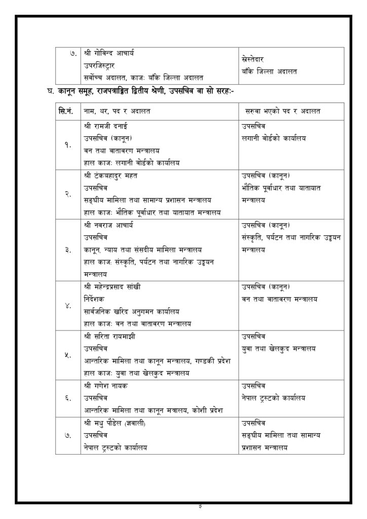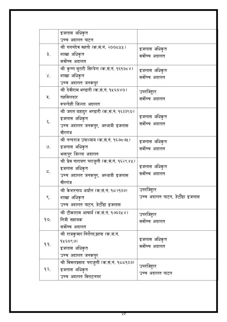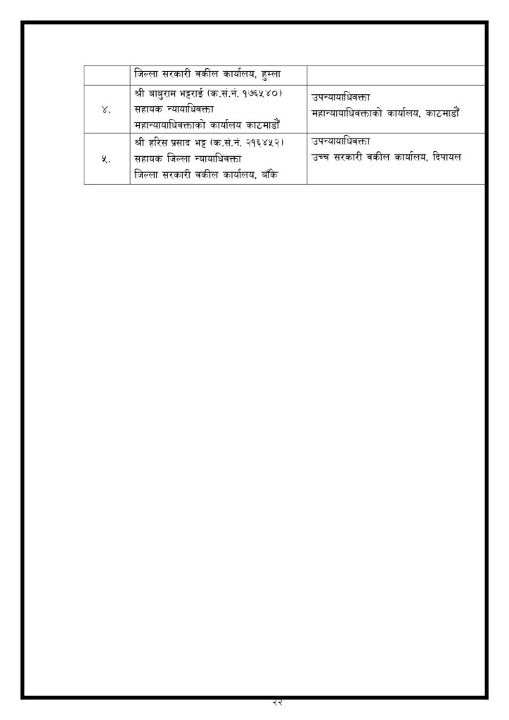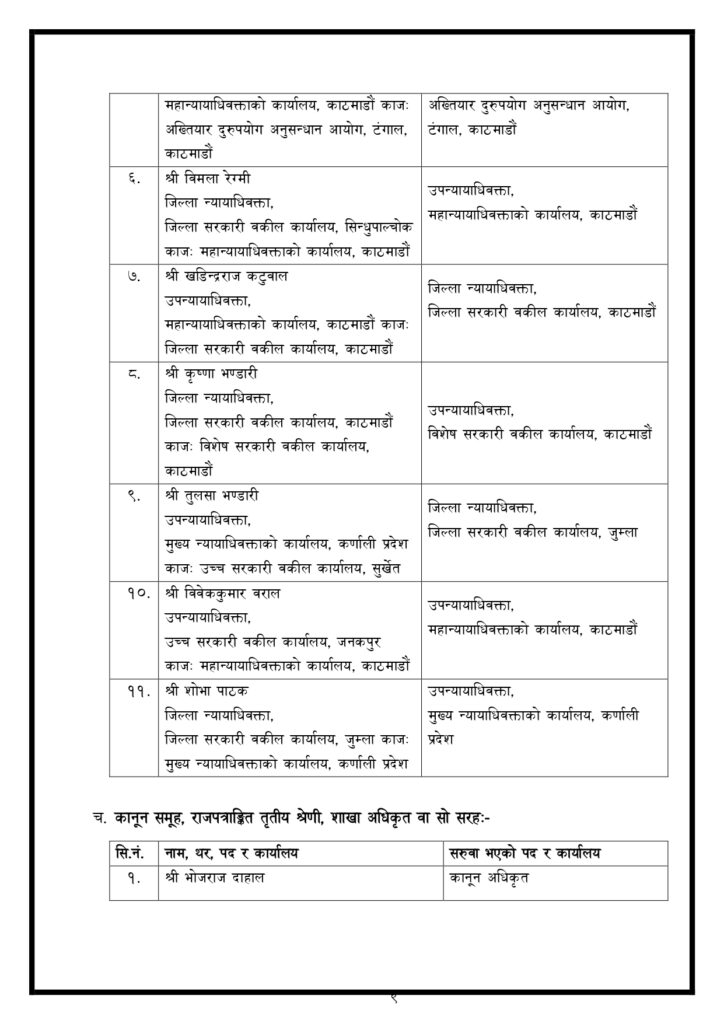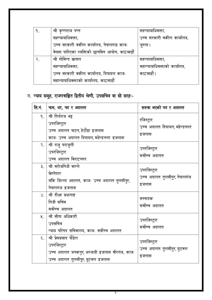ठूलो संख्यामा न्याय सेवाका सह–सचिव, उप–सचिव र शाखा अधिकृतहरूको सरुवा