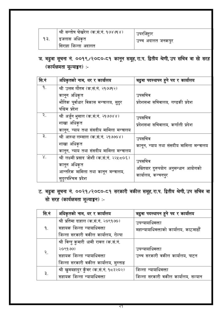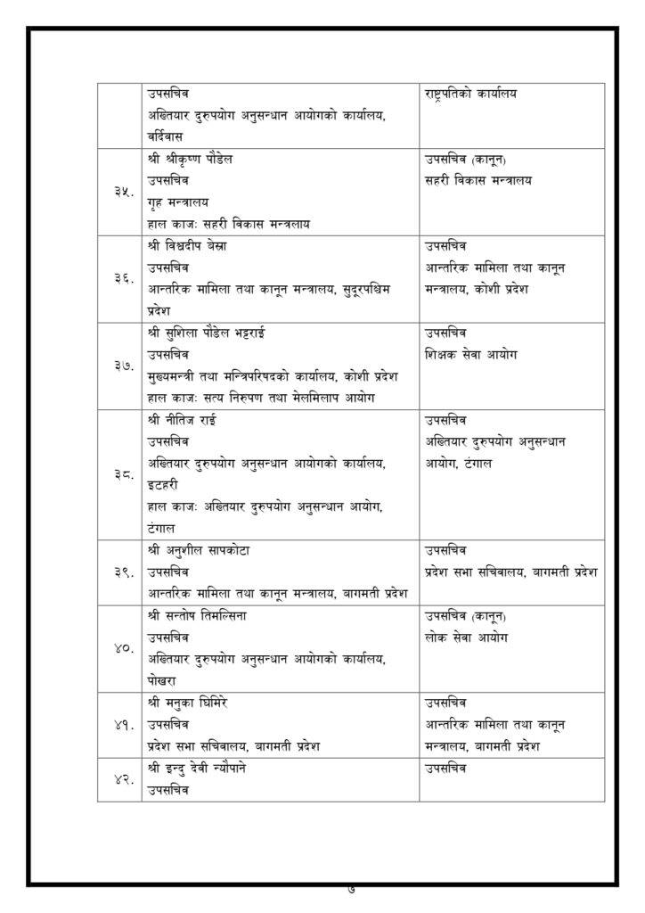 काठमाडौं । न्याय सेवा आयोगले ठूलो संख्यामा सह–सचिव, उप–सचिव र शाखा अधिकृतको सरुवा तथा पदस्थापन गरेको छ ।