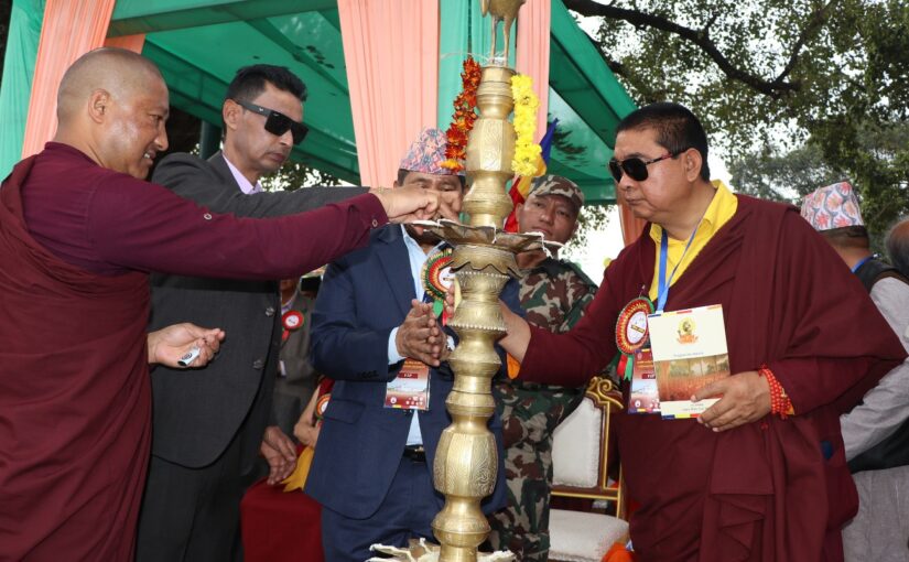 उपाध्यक्ष डा.लामाकाे पहलमा लुम्बिनीमा मायादेवी मन्दिर परिसरमा त्रिपिटक वाचन शुरू