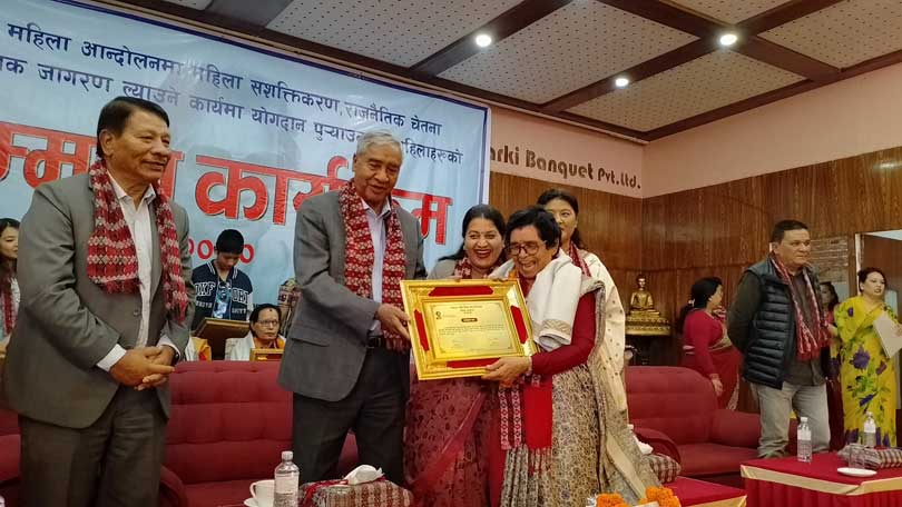 कार्यक्रममा लीला कोइराला (धनुषा), लक्ष्मी राई (भोजपुर), अञ्जु बस्नेत (दोलखा), कृष्ण अमात्य (काठमाडौं), चिनीहिरा शाक्य रञ्जित (काठमाडौं), सीता दाहाल (संखुवासभा), धनी श्रेष्ठ (सर्लाह), शारदा बैद्य (कास्की), शान्ता शर्मा (कञ्चनपुर), सोना भण्डारी (काठमाडौं), शशि रिमाल (काठमाडौं), सची रिमाल (काठमाडौं), विष्णुदेवी पुडासैनी (काठमाडौं)लाई सभापति देउवाले सम्मानित गरेका छन् । सम्मानित भएका उनीहरू मंगलादेवी सिंहसँग एउटै संगठनमा सँगै रहेर काम गरेका हुन् ।