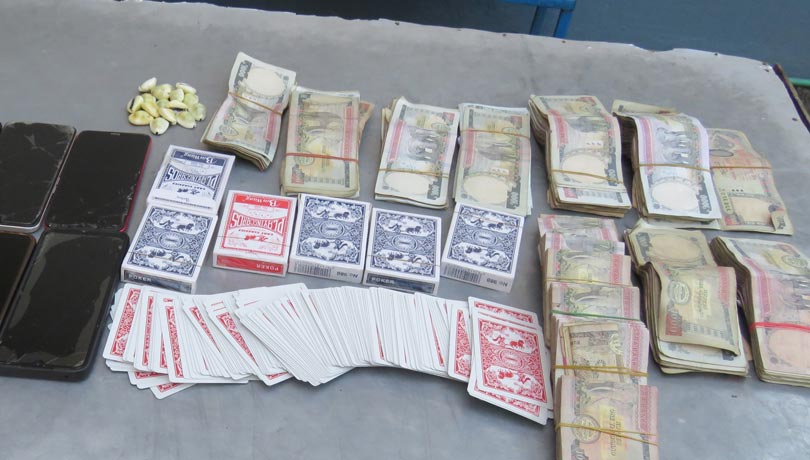 रत्ननगरमा प्रहरी छापा, जुवाताससहित ८ जना पक्राउ