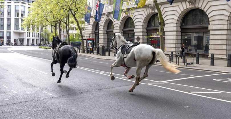 मध्यलन्डनमा एप्रिल २४ बुधवार बिहान सेनाका घोडाहरू भागेको बीबीसीले जनाएको छ । दुई घण्टापछि घोटाहरूलाई नियन्त्रणमा लिइएको छ ।