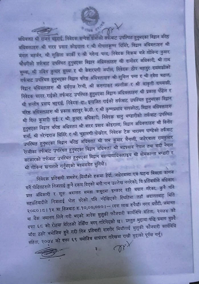 एमालेका नेता समेत रहेका शमशेर मियाँको हकमा भने उच्च अदालतले दिएको आदेश बदर भएको छ । २०८० मंसिर १५ गते उच्च अदालत पाटनले मियाँलाई १० लाख धरौटीमा रिहा गर्ने आदेश दिएको थियो । मियाँ अब पुर्पपक्षका लागि जेलमा बस्नुपर्नेछ । सबैभन्दा ठूलो झट्का मियाँलाई लागेको छ ।