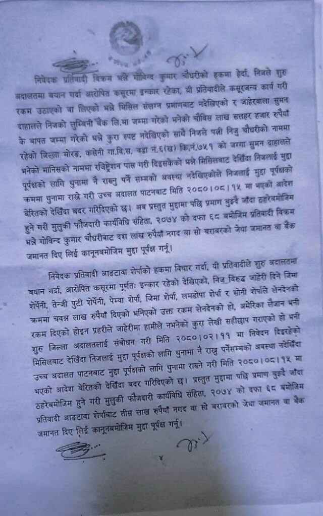 उच्च अदालत पाटनले पुर्पक्षका लागि थुनामा राख्ने आदेश दिएपछि रायमाझीसहितका प्रतिवादीहरूले सर्वोच्च अदालतमा पुनरावेदन गरेका थिए ।