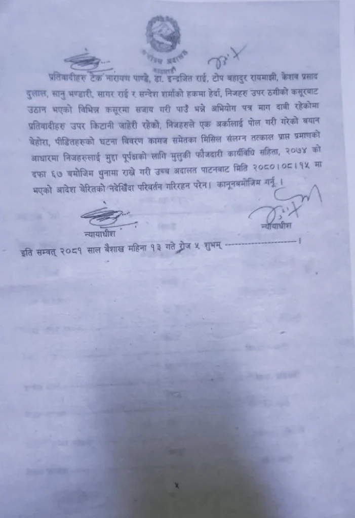 एमालेका नेता रायमाझीसहित तत्कालीन सचिव टेकनारायण पाण्डे, बिचौलिया केशवप्रसाद दुलाल, सन्देश शर्मा, सागर राई, डा.इन्द्रजित राई, सानु भण्डारीलाई थुनामै राख्न सर्वोच्चले आदेश दिएको छ ।