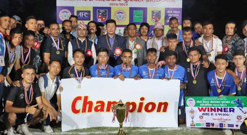 काठमाडौं । सशस्त्र प्रहरी बल नेपाल (एपीएफ) पकली सुनसरीले चौथो संस्करणको मिल्स गोल्डकप फुटबल प्रतियोगिताको उपाधि जितेको छ ।