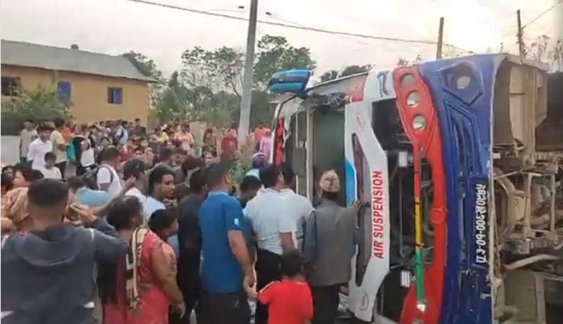 तुलसीपुरबाट काठमाडौं जाँदै गरेको बस दुर्घटना, १७ यात्रु घाइते