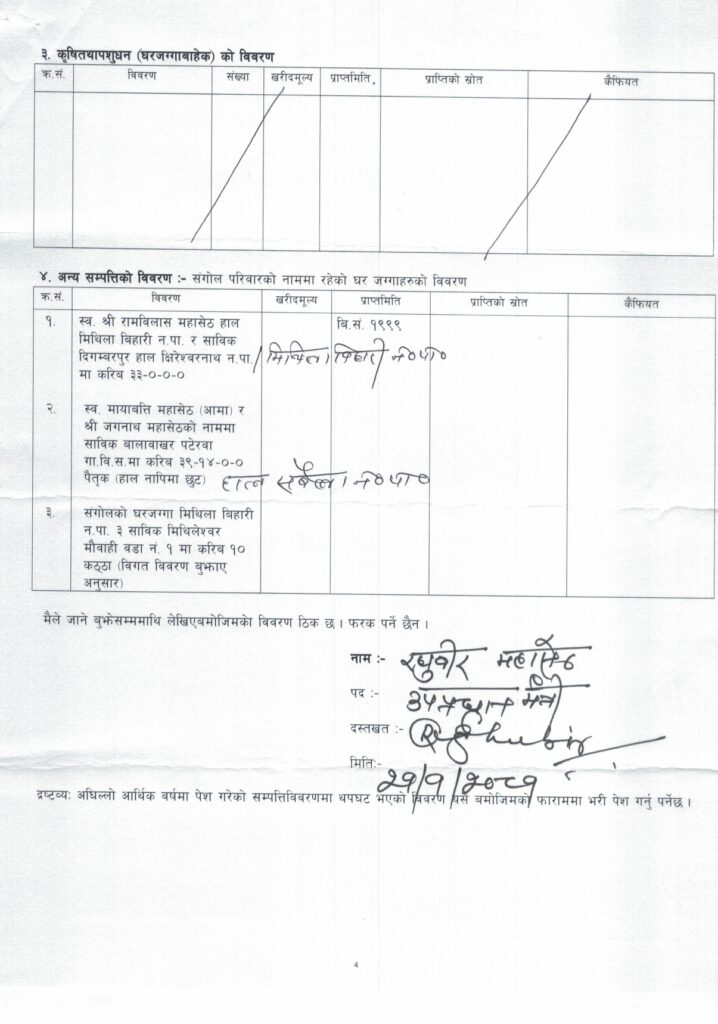 एमाले नेता एवं मन्त्री महासेठसँग ‘मुर्छा’ पर्ने पैसा र सम्पत्ति, अधिकांश सम्पत्ति पत्नीको नाममा
