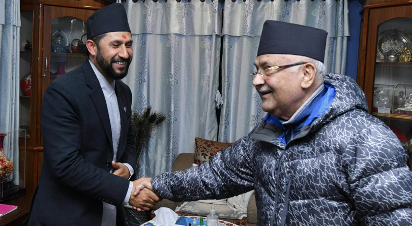 काठमाडौं । सहकारीको झण्डै १ अर्ब रुपियाँ अपचलन र ठगी काण्डमा मुछिएका गृहमन्त्री रवि लामिछानेले एमालेका अध्यक्ष केपी ओली (केपी बा)सँग भेट गरेका छन् ।