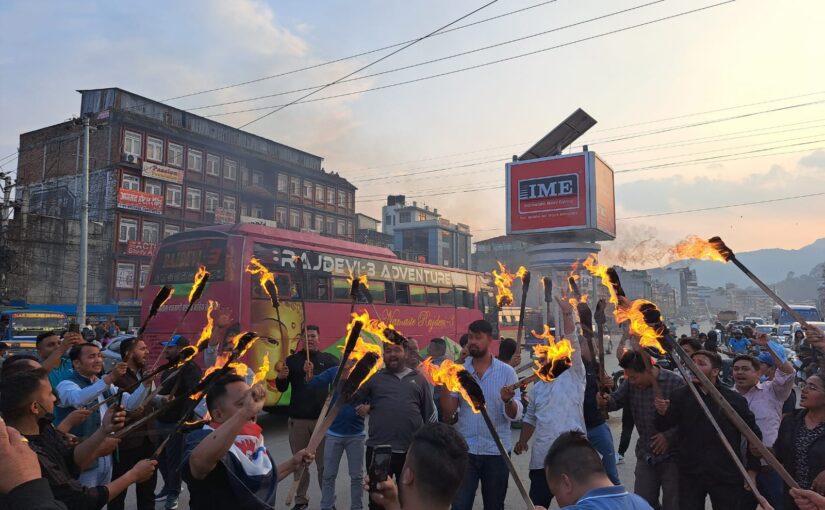 सहकारी ठग र गिरिबन्धु टि इस्टेट जग्गा घोटालाविरुद्ध गोंगबुमा पनि तरुणको राँके जुलुस प्रदर्शन