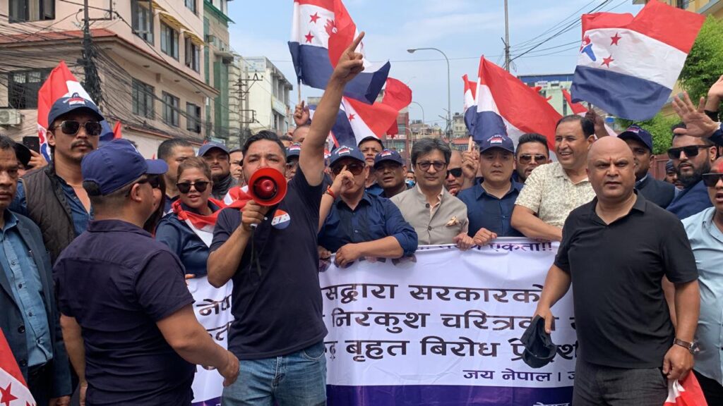 कांग्रेसले आइतबार काठमाडौंको प्रदर्शनीमार्गमा सहकारी ठगीविरुद्ध खुला सभा गरेको हो ।