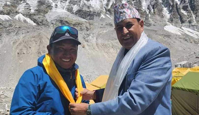 सभापति खतिवडाद्वारा गृहजिल्लाका शेर्पालाई सगरमाथा बेस क्याम्पमै पुगेर दिए बधाइ