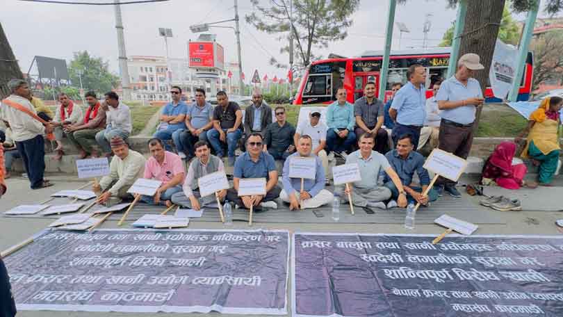 महासंघद्वारा क्रसर, बालुवा र खानी उद्योग नवीकरणको माग गर्दै काठमाडौंमा प्रदर्शन