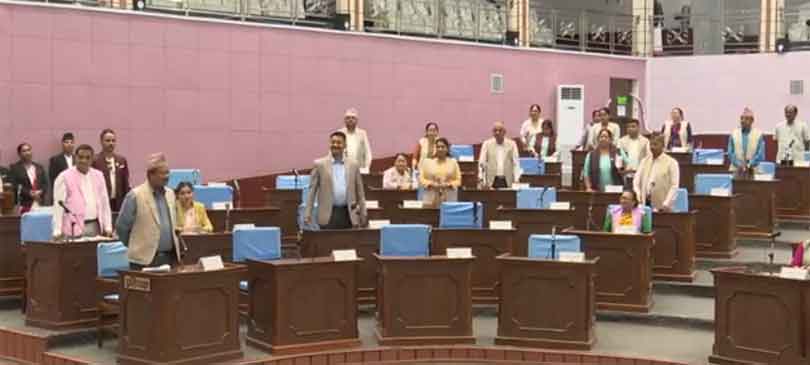 कांग्रेसका प्रदेश सभा सदस्यहरू आ–आफ्नो स्थानमा उभिएपछि बैठक केही समयका लागि स्थगित भएको छ ।
