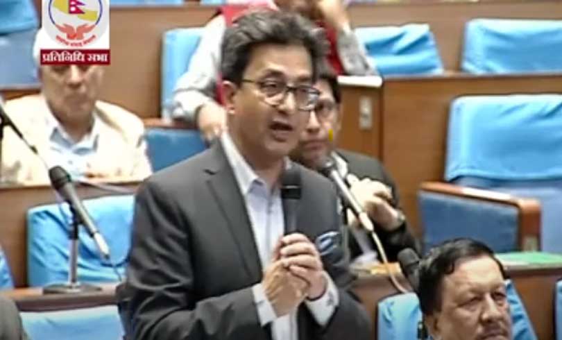 सांसद राणाले प्रश्न गर्दै भने, ‘राजीनामा दिनुपर्दैन ? डीजीले राजीनामा नदिए नेपाल सरकारले अनुसन्धान चलिरहेको बेलासम्म सस्पेन्ड गर्नु पर्दैन ?’