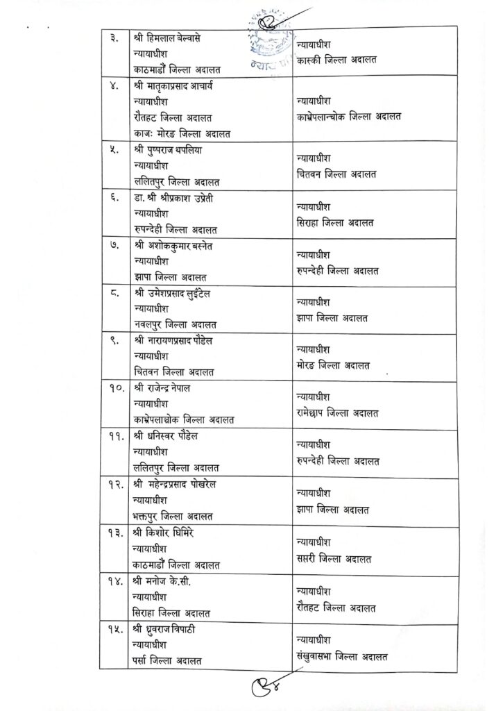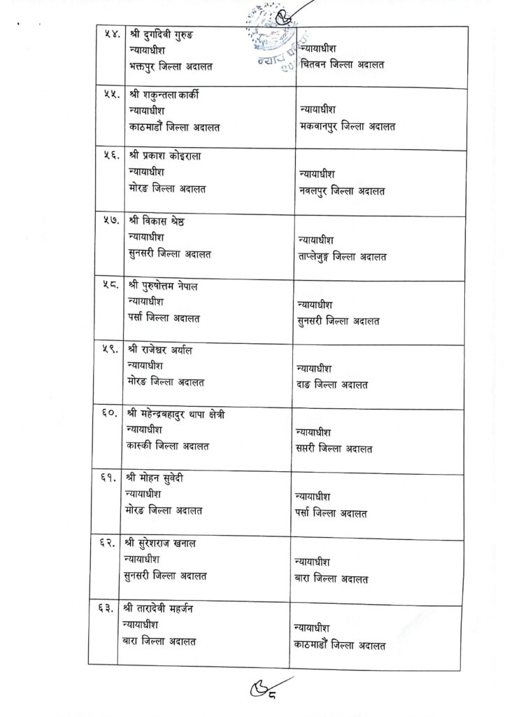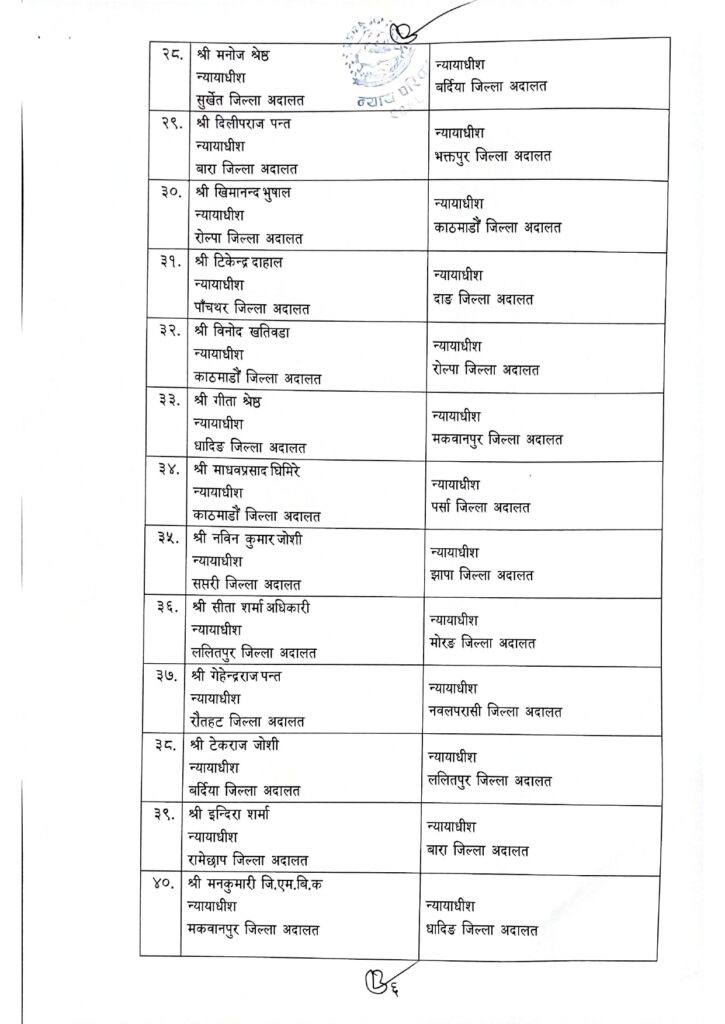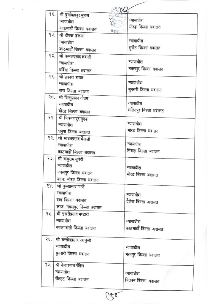 जिल्ला र उच्च अदालतका झण्डै एक सय न्यायाधीहरूको सरुवा
